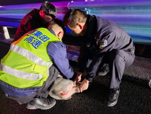 生猪窜入行车道 镇广公司多方协作化险为夷