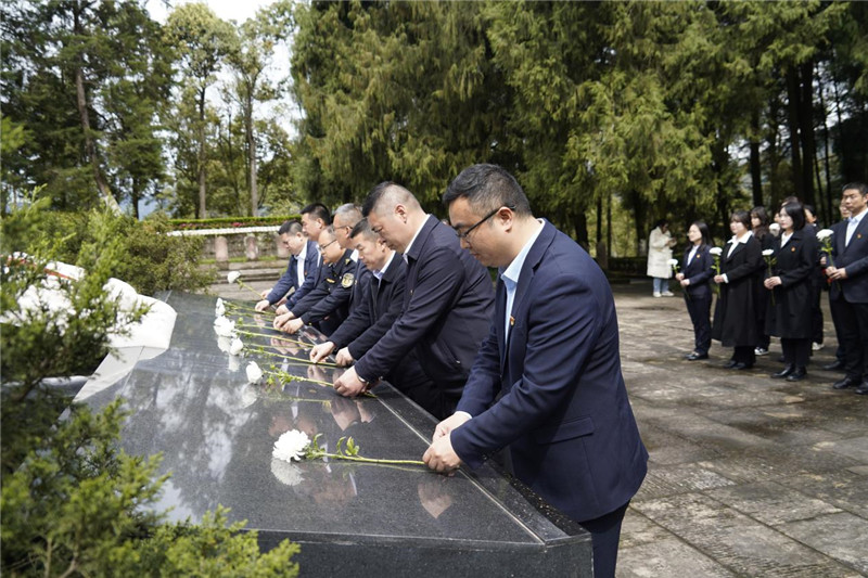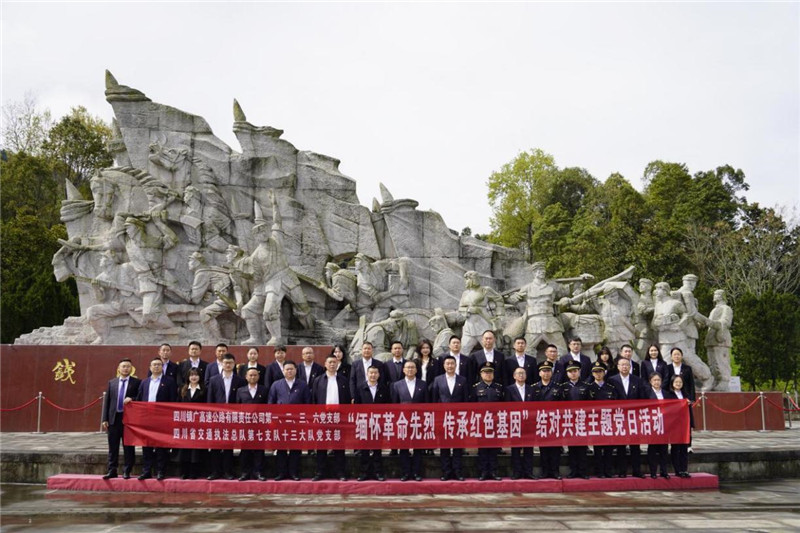 缅怀先烈、祭奠英魂是加强爱国主义教育、弘扬革命精神的重要组成部分。为深入贯彻落实习近平总书记关于烈士褒扬工作重要指示批示精神,更好传承和弘扬英烈精神,进一步厚植爱国主义情怀。清明之际,镇广公司第一、二、三、六党支部与省交通厅执法总队第七支队十三大队党支部以党建结对共建为纽带,于3月25日在川陕革命根据地红军烈士陵园开展“缅怀革命先烈 传承红色基因”为主题的缅怀纪念活动。