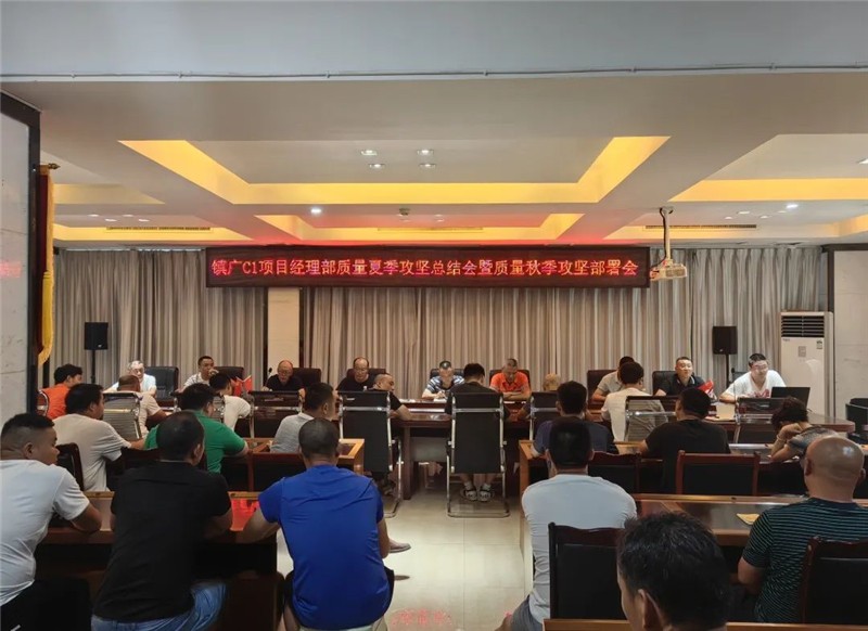 为切实落实镇广公司质量安全要求,8月9日,镇广高速C1项目召开质量夏季攻坚总结会暨质量秋季攻坚部署会。平昌代表处相关人员到会指导,会议由项目经理何大宏主持。